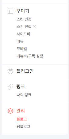 그리고 좌측 사이드바 가장 아래 관리에서 블로그로 들어가줍니다.